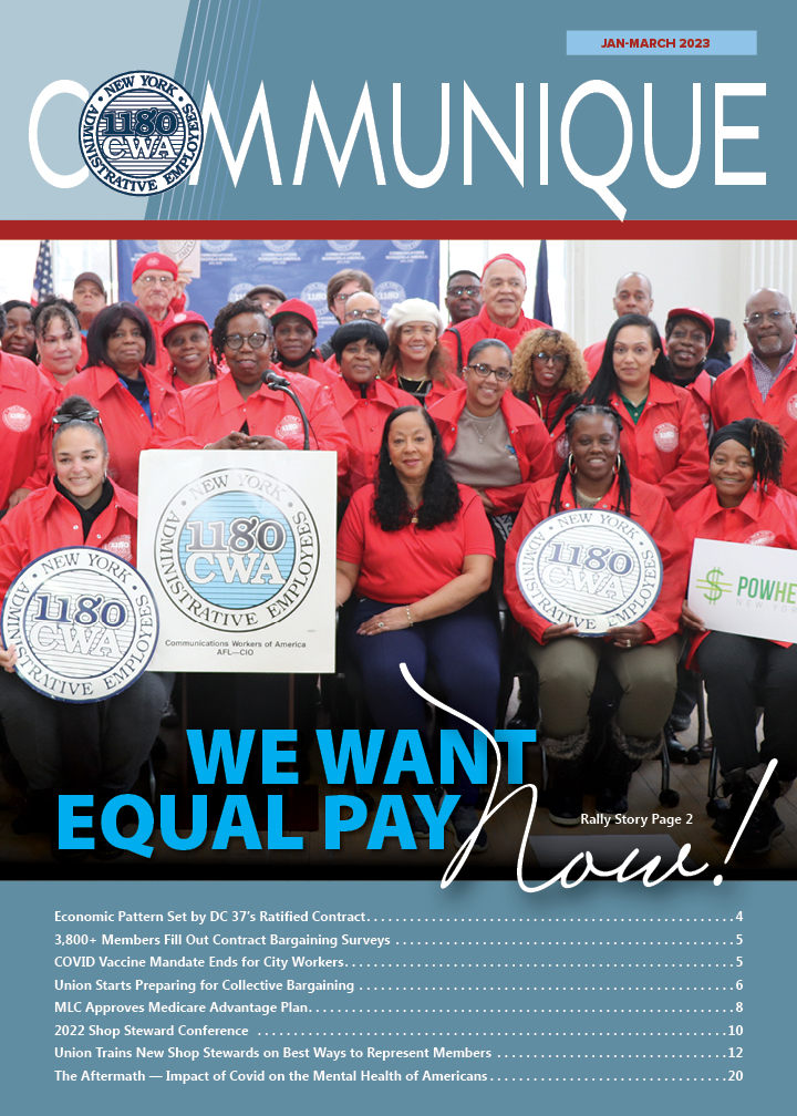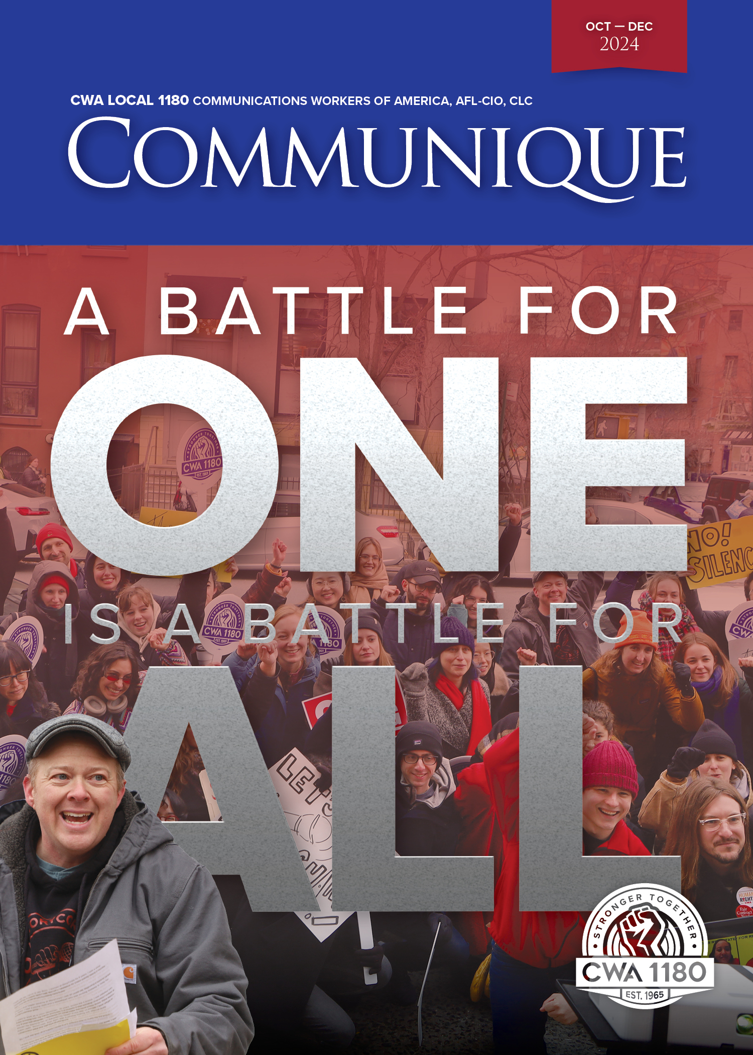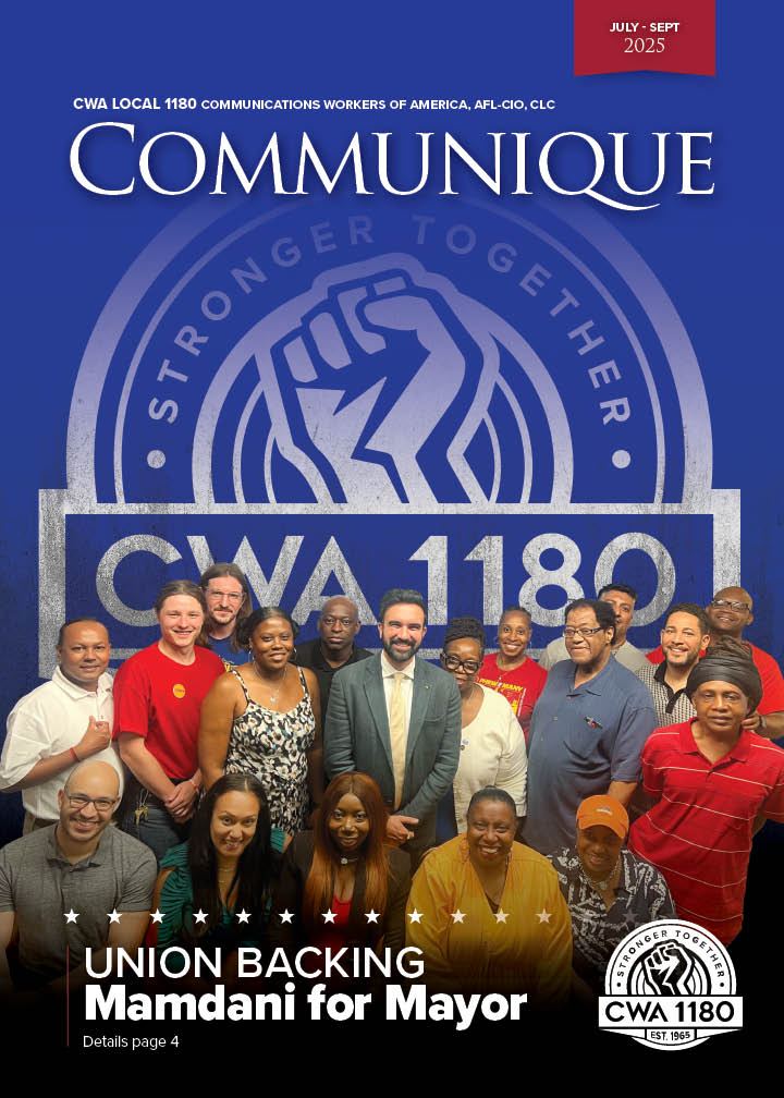 CWA Local 1180’s quarterly magazine, the Communique, has consistently garnered top awards in the Metro New York Labor Communications Council and the International Labor Communications Association contests. Competing against some of the country's best labor publications, the Communique repeatedly stands out in categories for both writing and graphic design, while Local 1180's outreach campaigns and social media programs take the highest of honors.