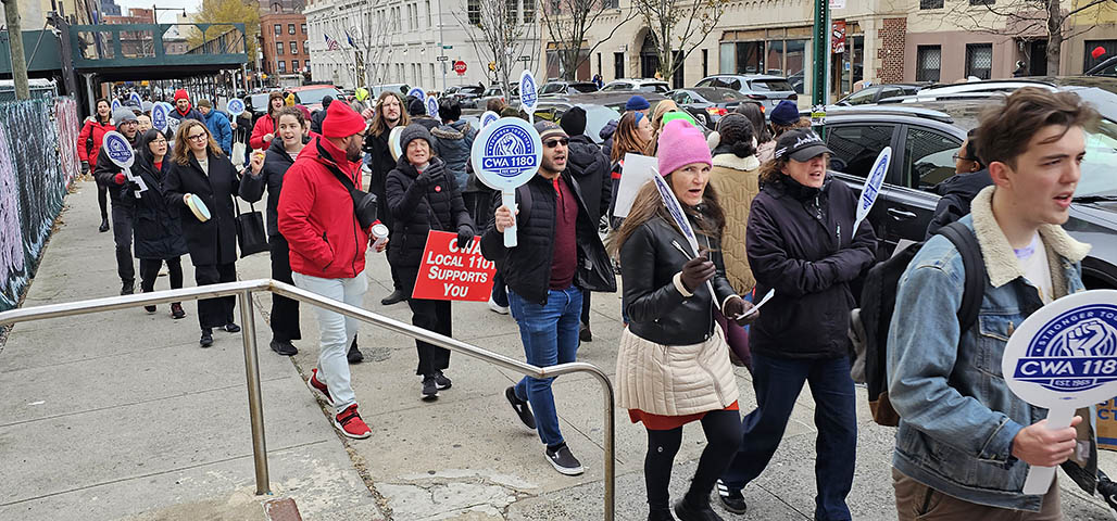On March 15, Local 1180 members joined more than 10,000 union and community activists in Lower Manhattan to demand Congress and the White House stop the cuts and attacks on working families. Led by CWA District 1, the march sent a clear message: when labor is under attack, we fight back.